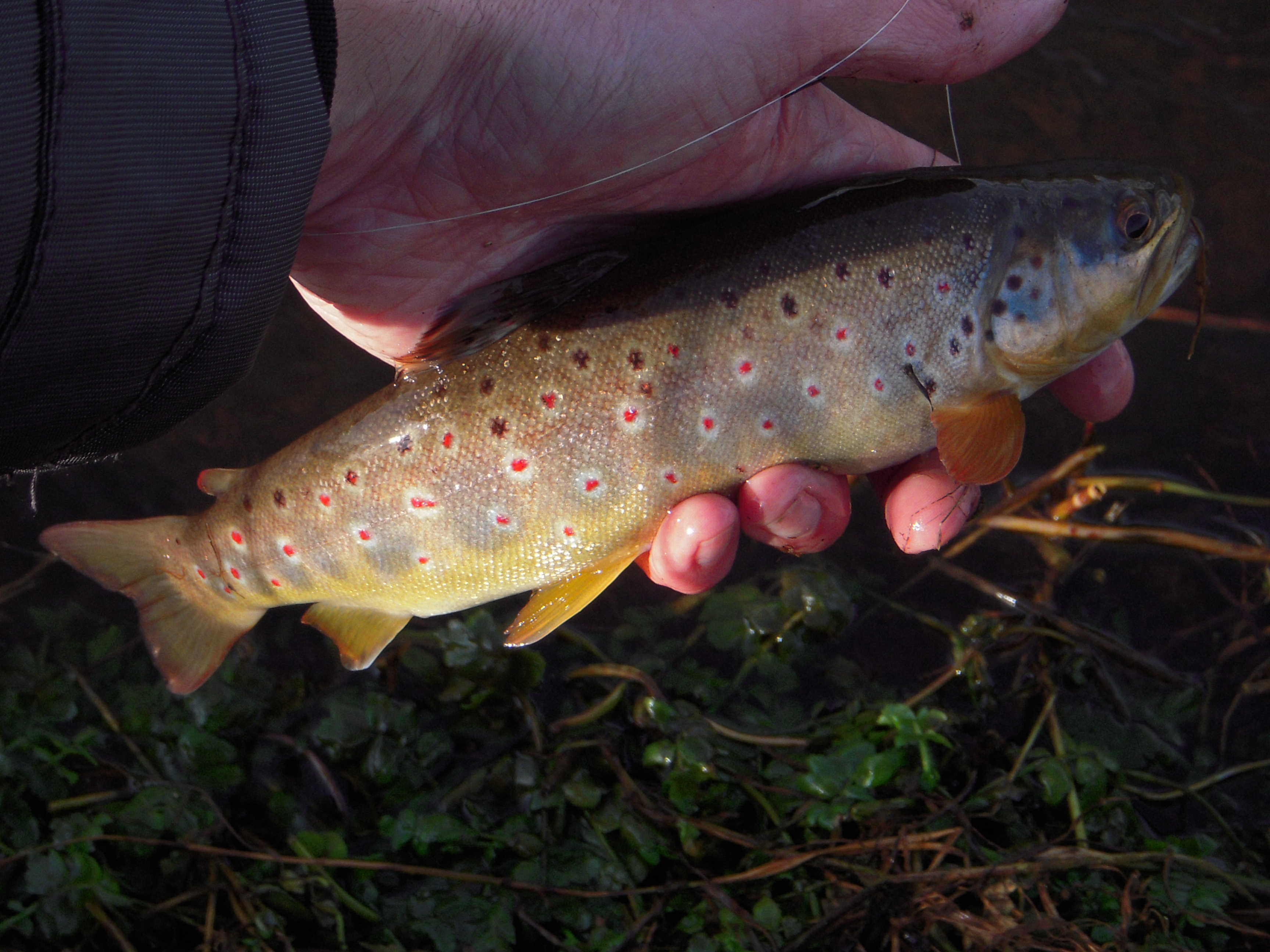 – Og kort efter kunne jeg forsigtigt holde den første af 3 fine måls-bækkere i min fugtede hånd. – Jeg bliver simpelthen aldrig træt af old-school bækørred-fiskeri…