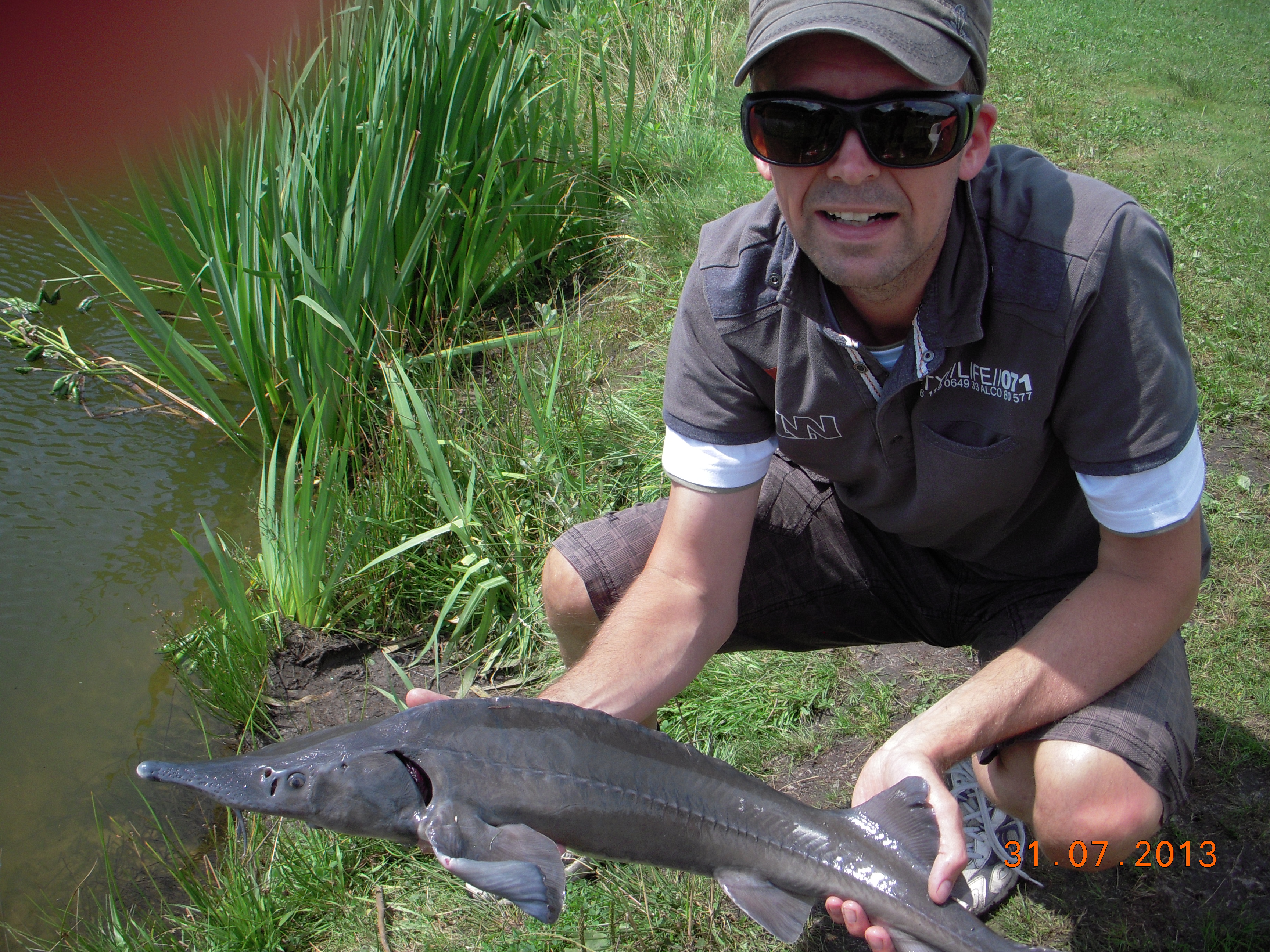 I maj 2013 blev der udsat 12 Stører op til 8 kg i de to søer på hhv 5.000 og 35.000 M2 (stoooor sø). Ud fra billeder tror jeg der er tale om DiamantStør. – Pr. juli 2013 er der dog kun 11 tilbage, da en tysker nakkede éen…(dumt). Der er 3-4 Stør i den lille sø og 7-8 stk i den store. – Så det er nok lidt svært at finde 7 Stører under 35.000 M2 vandspejl…, – prøver du alligevel, så sats på den nordlige sø-ende, eller måske i den lille sø, som er noget mere overskuelig.