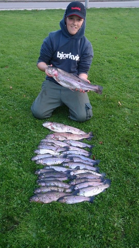 Han udbrød kort tid efter, at han gerne ville have sådan lille stang, da det var meget sjovere end en normal stang! Der var et stort smil i ansigtet på ham, da jeg tog ved fisken og landede den for ham med hænderne. Stort highfive og der skulle aflives en fin regnbueørred.