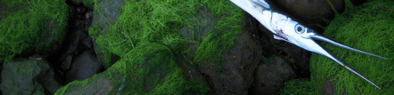 Jeg smed et bette stykke Madagascarreje på den lille trekrog, og fik tyret den ud i den nu kraftigt aftagende strøm. Efter et kvarters tid tog flåddet det første dyk, dog uden at jeg fik reageret i tide. Men kort efter – vandet var nu begyndt at stige og strømmen stod nærmest stille, – fik jeg klappet fint til en snappende “reje-røver”, og en god hornfisk fik lavet en smuk haledans, mens den spinkle UL-stang måtte kvittere med en heftig “poledance”. – Jo, en hornfisk er altså bare suverænt tilpasset UL-gearet 🙂