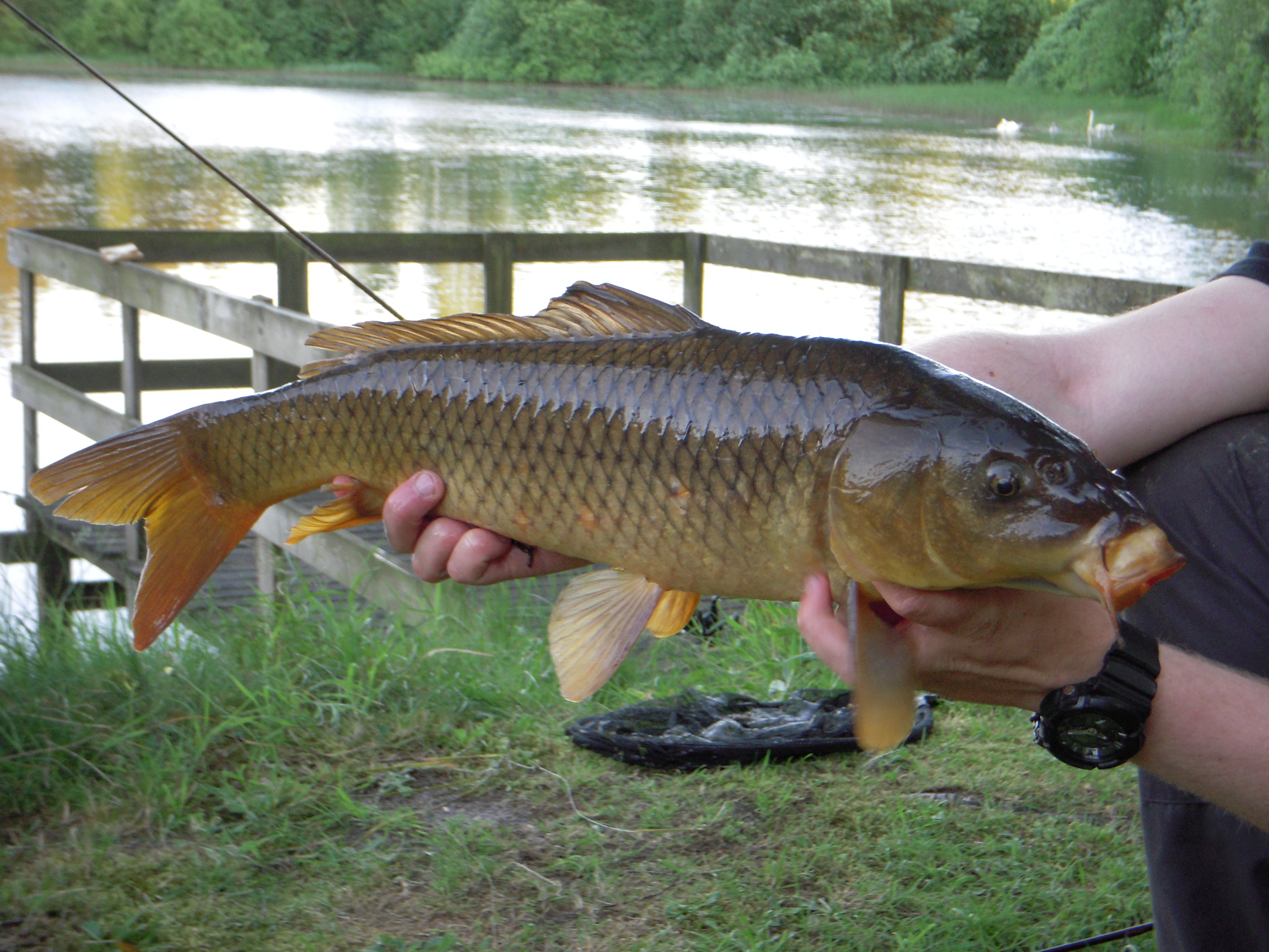 Snart fik jeg lokket dem til med lidt guf, og sandelig om ikke der var et par stykker, som faktisk inhalerede min dejklump!!. – Desværre måtte amatøren (undertegnede) erkende at talentet for modhug ikke var på niveau med karpernes talent for at stjæle brød….