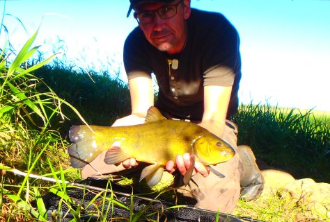 “Støvsugeren” blev tændt på den forreste i Suder-flokken, og første “oprydning” gik ud over min dobbeltmajs-agnede krog. Og så var der fandme gang i den. – Hold da magle hvor fighter sådan en gul drønnert altså godt!!. Men op i “sækken” kom den, mens jeg fik gjort kameraet klart. Og sikke nogle fine skud jeg fik mig!. Det var et fint eksemplar på 44 centimeter og lige på den sjove side af et kilo. – En fisk som havde haft halen i nærkontakt med en af søens gedder, men ellers bare gudesmuk! – Dermed en længe ventet PR med en +40’er.