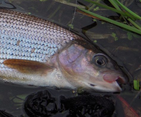 Jeg nåede aldrig at få målt denne prægtige fisk, for min sædvanlige fisk-i-net-i-vand-mens jeg klargør kameraet-manøvre kiksede: Jeg var så dygtig at få udraderet mit gennem 25 år troafaste net, så derfor var der – via mit nye net – kommet uorden i min sædvanlige gameplan for landing, fotografering og genudsætning. – Den store stalling fandt simpelthen ud af netmaskerne inden kamaraet havde indfanget det sprælske kræ…. 🙂