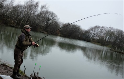 – På en af de velkendte pladser var der god læ for den drilske vind, og med et par kopper mocca i blodet og en håndfuld røverhistorier, kunne vi fint holde varmen. Stængerne blev “ladet” med pellets og ørredstrimler, – ud i suppen med dem, og så var det bare at vente….