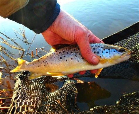 Den sidste halve time gav ikke andet end et par måske-kontakter, men det gjorde ikke så meget, for glæden var stor over både den nye rekordfisk, de fede fights og glæden ved at have “ryddet lidt op” i de ubudne tilflyttere….. – Og så kunne det da være, at man skal opjustere forfangsspidsen før tørfluefiskeriet indledes….