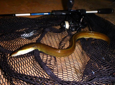 Der blev sprællet godt dernede, men kort efter kunne jeg hejse en mindre men meget livlig ÅL op i spanden 🙂 Yes!
