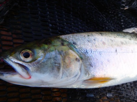 – Ups, – jeg fik i første omgang dømt den fine ædelfisk fra i onsdags til at være en havørred, men en god fiskekammerat gjorde ud fra billederne opmærksom på at det kunne være en lille laks…. – Jeg måtte indkalde hjælp fra eksperten….