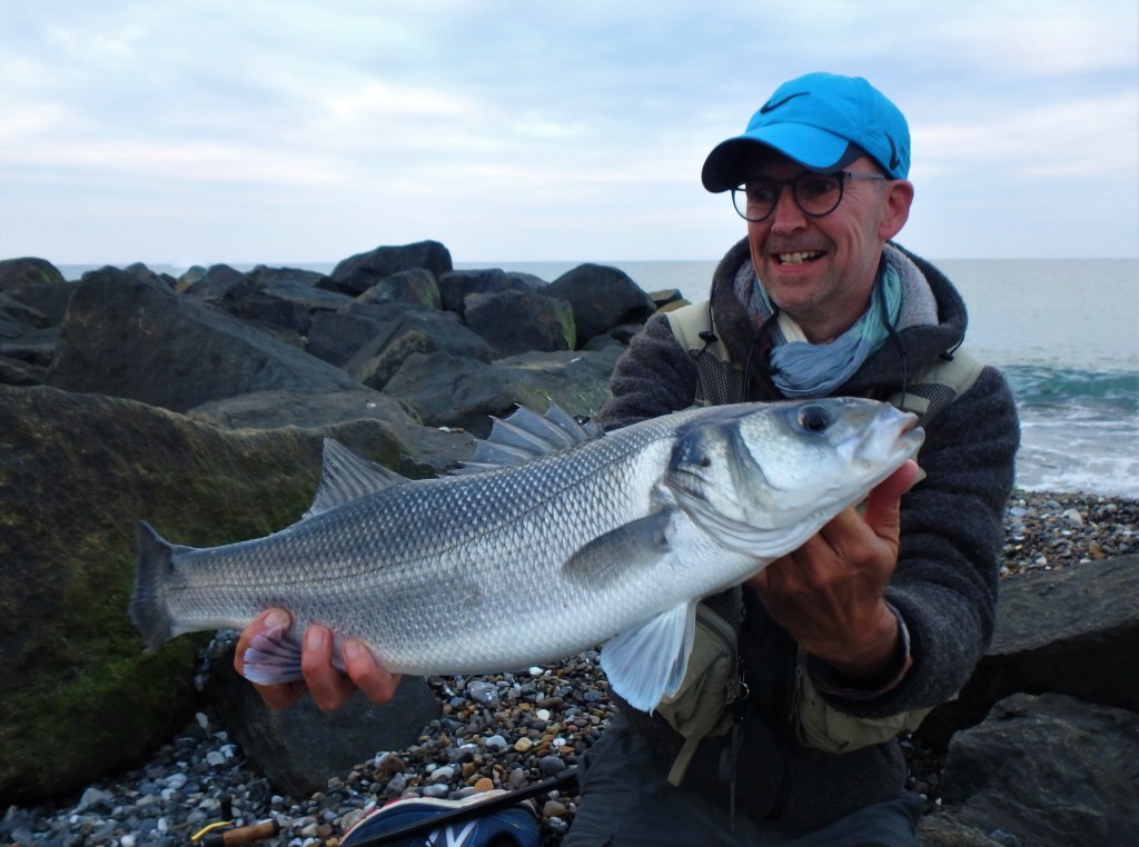 Solskinsbarsen var dog – på grund af søens noget mere polerede omgivelser end på den vilde vestkyst – noget nemmere at kontrollere, og derfor kom den sikkert i mit nye teleskopnet (som jeg sjovt nok netop havde indkøbt til vestkystens barsfiskeri…) 🙂 🙂 🙂