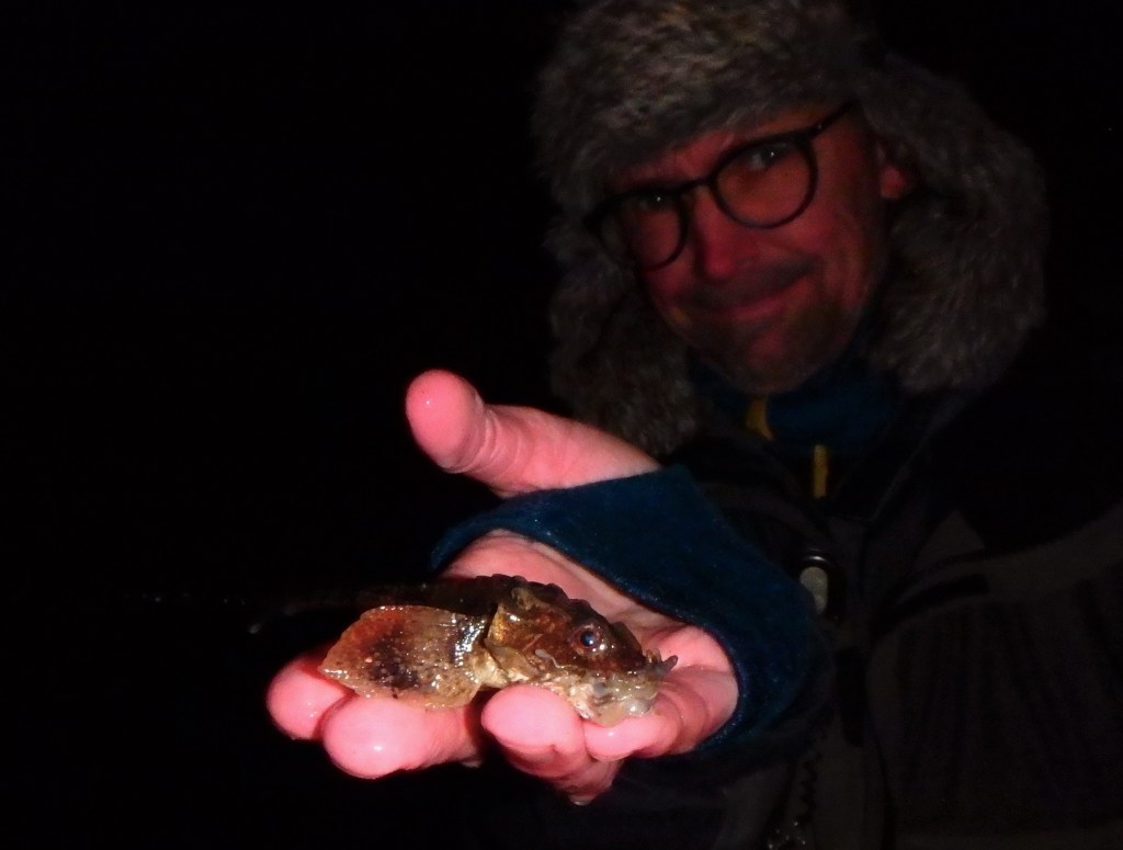 Vi ramte højvandet helt perfekt, hvilket gør at flere arter trækker inden for rækkevidde i mørket. Det gav en del fisk i feltakvarierne, bl.a. fik jeg en ny PR i Ålekvabbe: