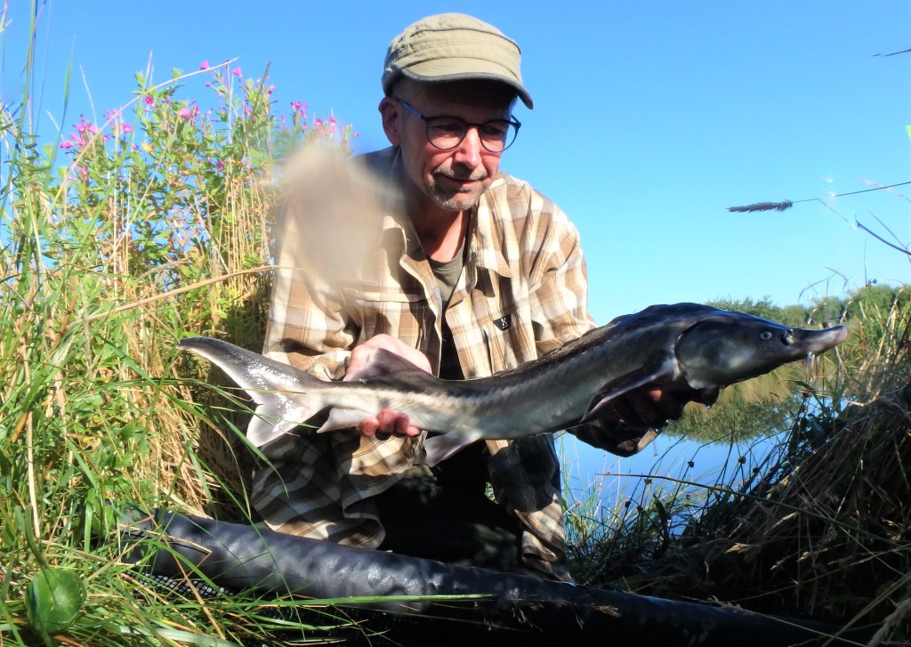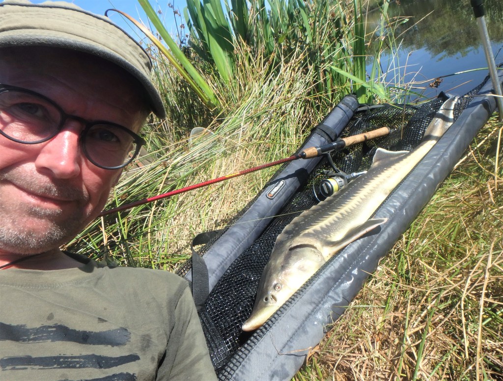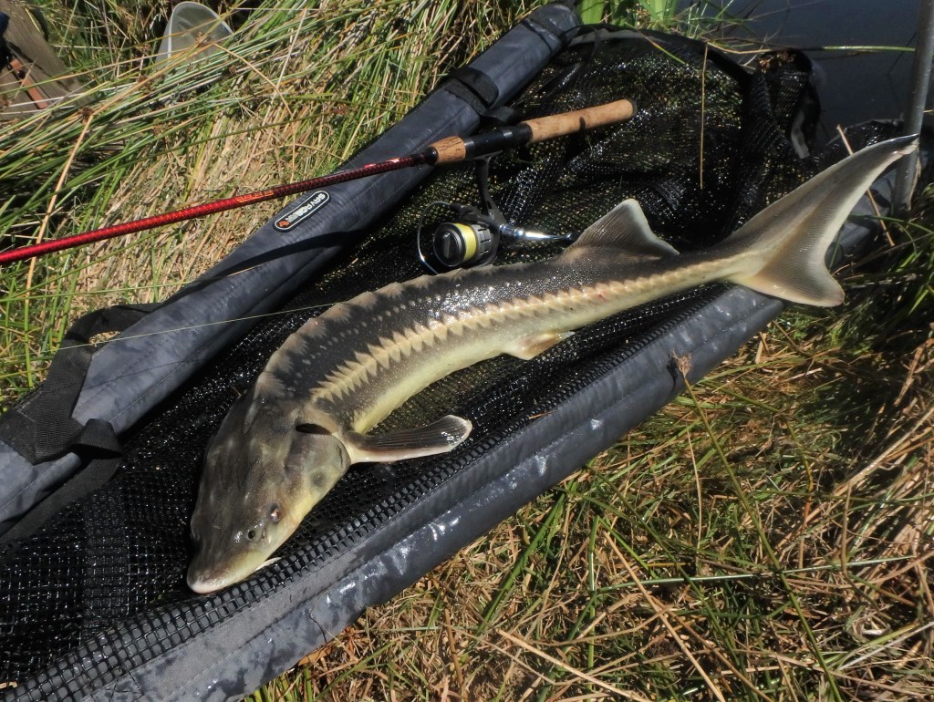 Jeg havde kun lige brudt den spejlblanke søoverflade med mit lille ormeagnede UL-rig, da stangspidsen gav et lille lækkert “nik”, og kort efter blev der nikket igen. – Jeg var morgenfrisk, og tilslaget sad perfekt. En fin lille fight senere gled en lille 66 centimeter lang stør ind i slyngen, og sandelig om ikke det var en spritny UL-art, som lå der og shinede i morgensolen: En ultra-flot Belugastør 🙂 – Det må være DK’s første – og måske eneste – Belugastør fanget ved målrettet UL-fiskeri? – Og den sendte samtidig total UL-scoren op på 95 arter (87 i DK + 8 udlændinge).