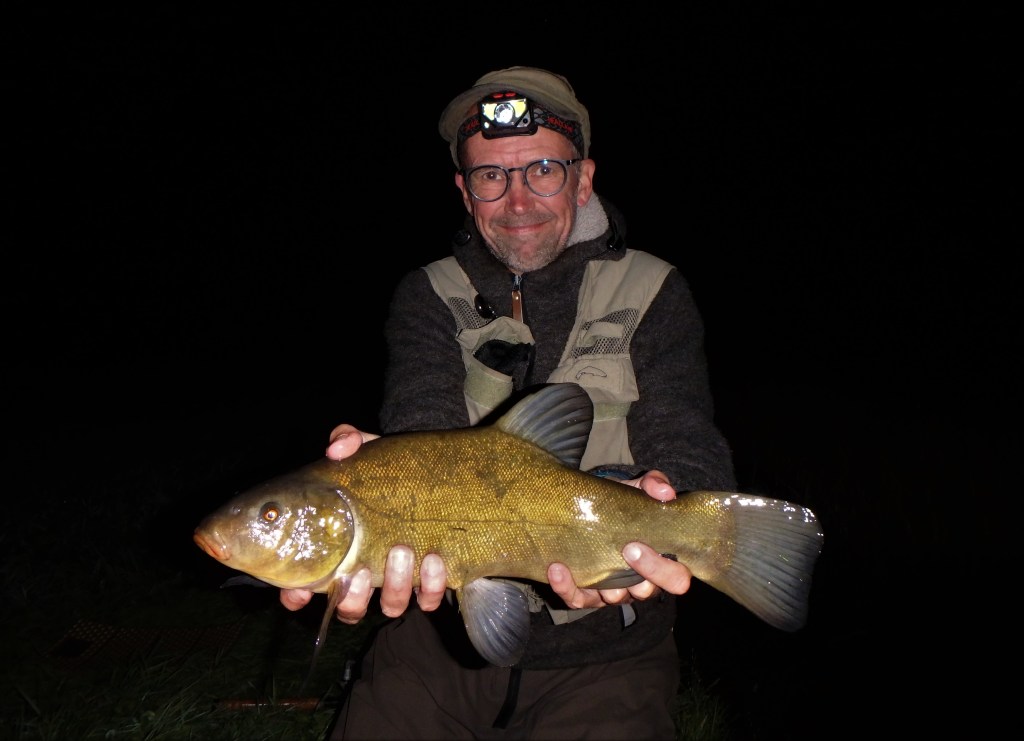Ålene så vi slet ikke noget til, men aftenens sidste fisk blev alligevel en rigtig god en af slagsen. – En godt fightende fisk havde taget min regnorm, og driblede rundt ude i mørket. – Den kraftfulde kampindsats kunne næsten kun være – og var da også – en flot Suder (se topbilledet).