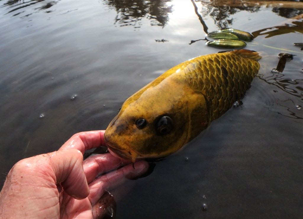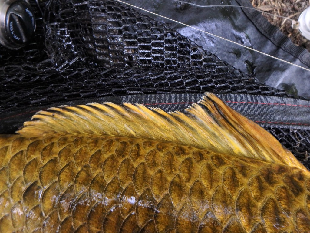 De store kraftfulde finner, den gyldne metalliske farve, den velproportionerede krop og ikke mindst de fascinerende ansigtmarkeringer giver denne fisk en speciel sødmefuld plads i min fiskehjerne. – Nuuuuj hvor har jeg jagtet sådan en spøgelsesfisk længe!
