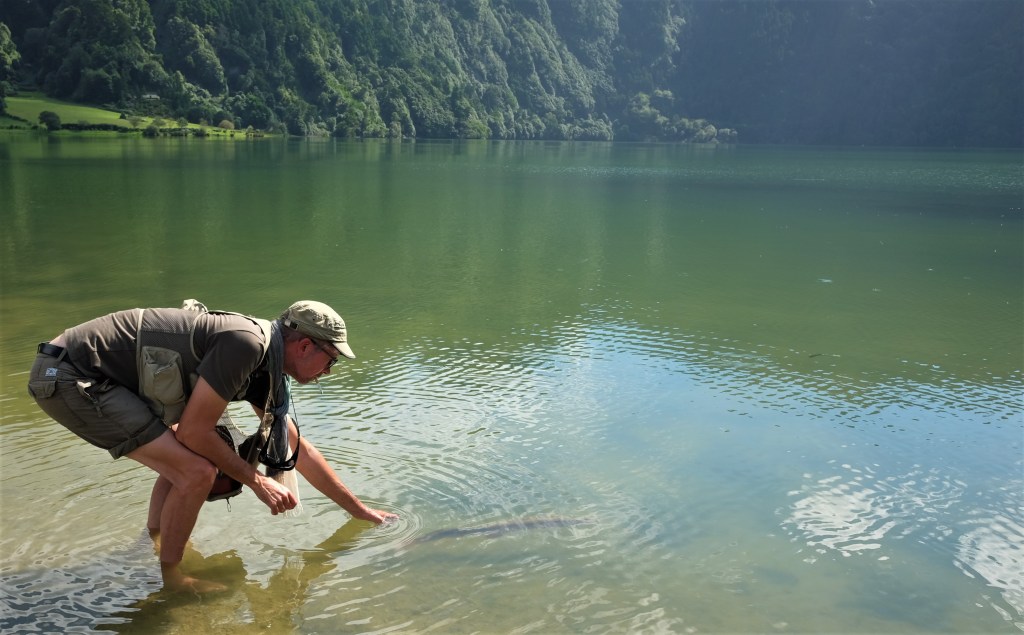 Azoernes smukke søer skal opleves! – Om det er Ildsøen, Furnas, Den Blå og Den Grønne Tvillingesø eller den småhemmelige São Brás, så ligger de omgivet af nogle “breathtaking” scenarier. – Vi fyrede den af i nogle af dem og fik i alt hevet 6 ferskvandsarter på land…