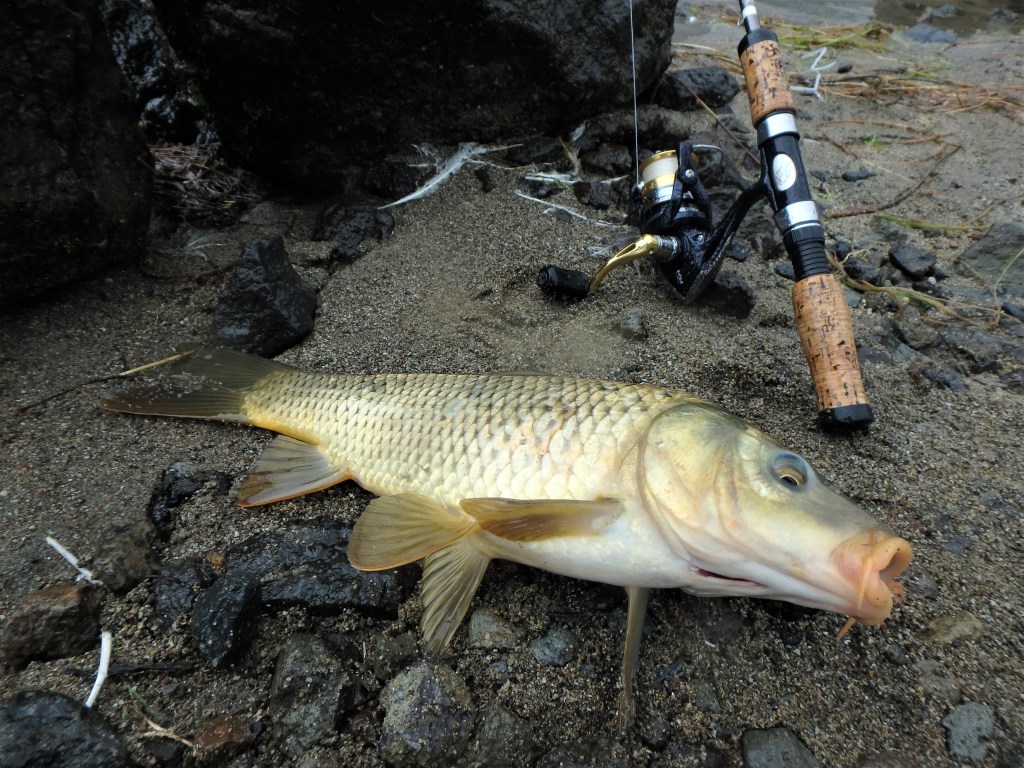 Skælkarpen mødte vi også i Lagoa do Fogo mellem vores lækre Black Bass, lige som der også bor nogle kapitale karpe-basser i Furnas. På Sáo Miguel er der også enkelte mindre åer med semivilde Regnbueørreder og små Bass. – Så der er absolut ganske fine muligheder fornoget godt traditionelt ferskvandsfiskeri på øen, hvor et års-ferskvandsfiskekort koster noget under en 20’er….. – Til saltvandsfiskeriet kræves der ikke kort 🙂