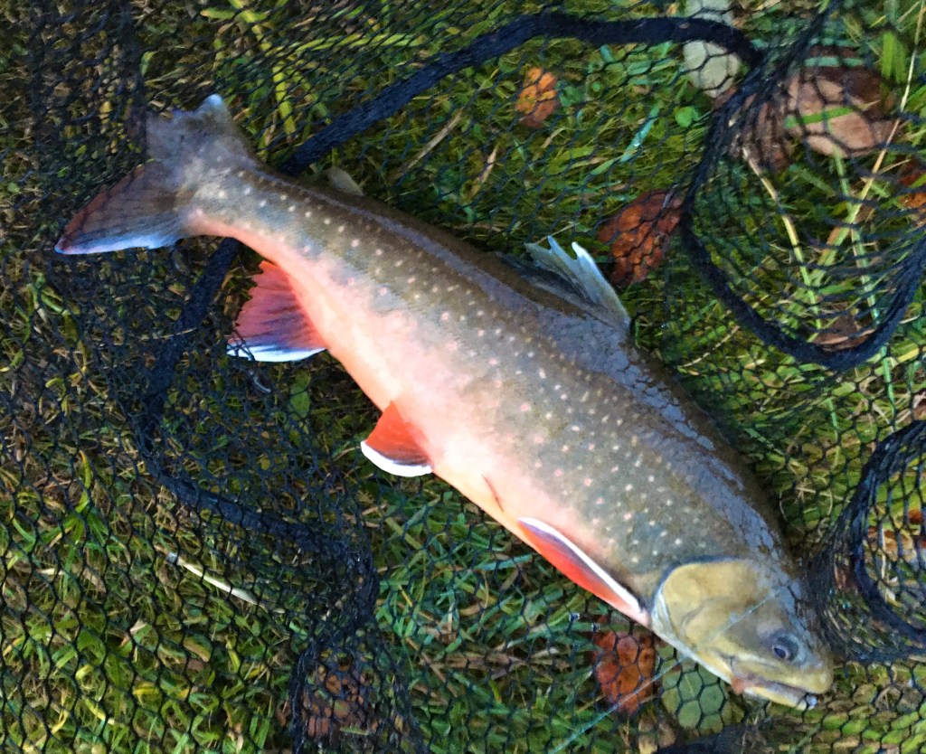 Ørredflokken var stadigt yderst forsigtige, så det var svært at opnå et ordentligt hug. Men med kun 10 minutters fisketid tilbage blev der endeligt trykket til, og endnu en ihærdigt kæmpende ørred kunne bakses i nettet. Og igen var det en Brødding 🙂 – det er altså bare en flot art!