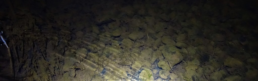 Mørket var ved at falde på, hvilket for mig kun var helt perfekt. For næste art på listen var den fine Finnestribede Ferskvandsulk, – en art som havde snydt mig et par gange tidligere på sæsonen… Denne art er ligesom Bitterlingen kun udbredt meget få steder, men i den lille å som jeg “gravede frem” for tre år siden, plejer der at være ret gode chancer. – Og overraskende hurtigt spottede jeg hele to små ulke! … Og mine vanlige problemer med at kroge netop denne art var åbenbart ikke-eksisterende på denne tur, så derfor kunne jeg lettere måbende efter kun 10 minutter parkere hele to styks i akvariet!
