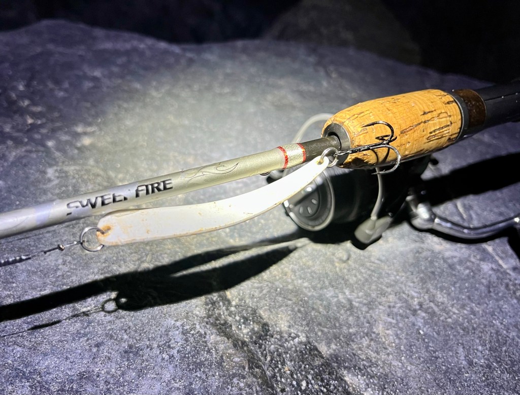 Føj hvor er min tudsegamle 200,- kroners Sweepfire UL-pind da bare genial til det rå vestkystfiskeri. Den røg ind fra reservebænken, da jeg brækkede min WildWing sidste år ved denne tid, og allerede i foråret tumlede 6 fods-klingen flere Pighvar op til 3,8 kilo! – Det er fandme god UL-power! – Jeg har jokket et ældre Ryobi Zauber 1000 på den, og garneret med det gamle slidte Stripperblink blev det sgu en gennemført fed retro-fangst.