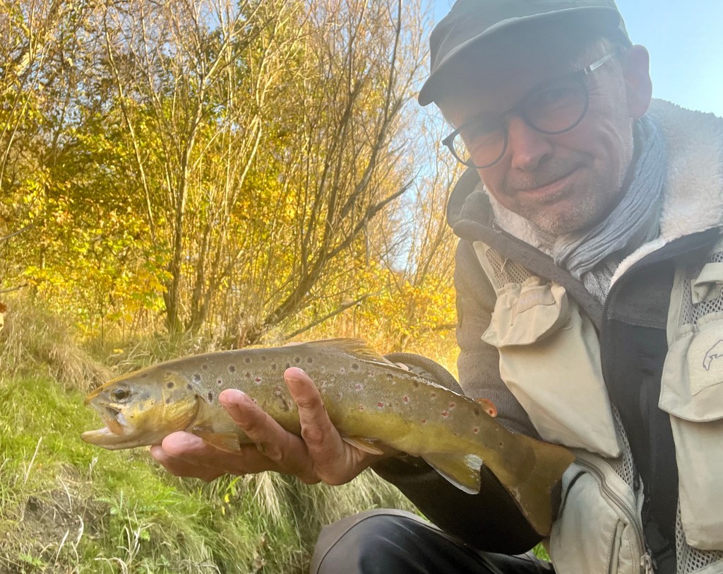 Fiskene var også klar til noget oktoberfest, for allerede i første kast var der en mindre bækørred som hilste på. – Dem ramte jeg vel en 6-7 stykker af i løbet af den tre timer lange tur. En enkelt lidt større stemplede også ind: