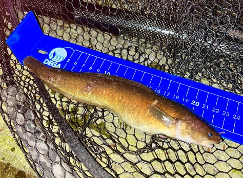 Virkeligt et suverænt eksemplar som faktisk fightede ret godt på min 0-7 grams pind 🙂 – En halv times tid senere kom endnu éen i spanden, – den var med sine 15 centimeter i mere standardiseret størrelse. – Og så var det ellers “optøningstid” i bilen med konstateringen af at årsart nummer 20 og 21 var i hus. – God start på sæsonen… …