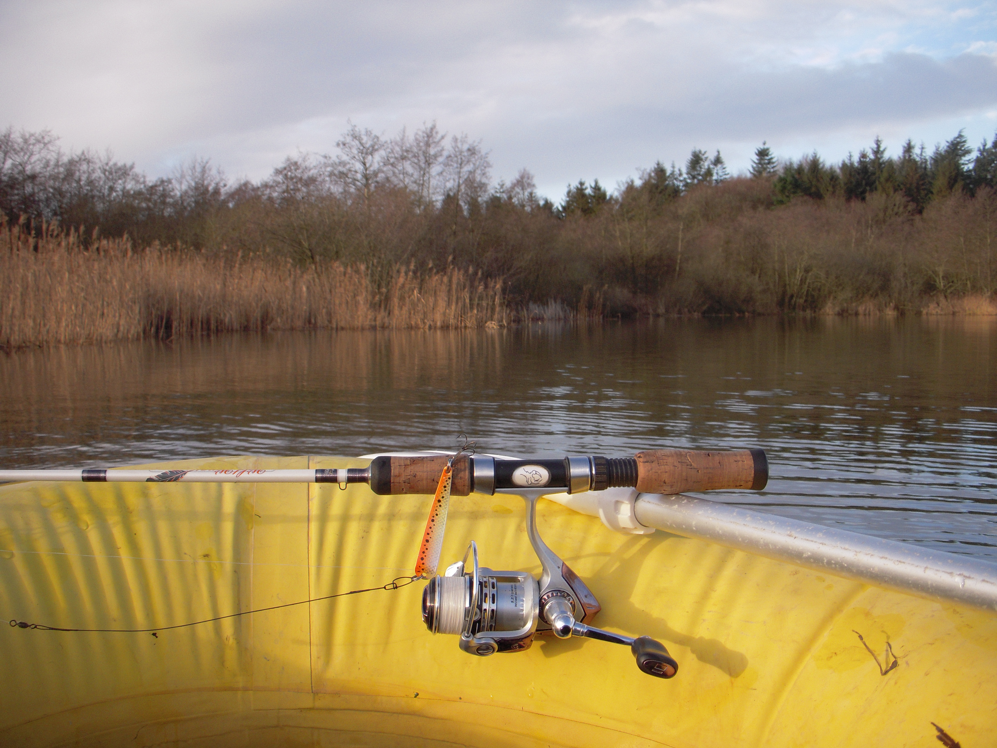 PUT & TAKE: I den kolde vintertid – hvor stort set alt mit put and take-fiskeri foregår – har jeg absolut mest held med hvidt og især GULt på mine agn. Jeg fisker langsomt ved bunden, og skifter mellem spinner og blink.